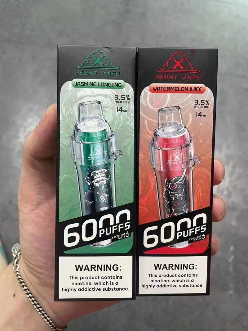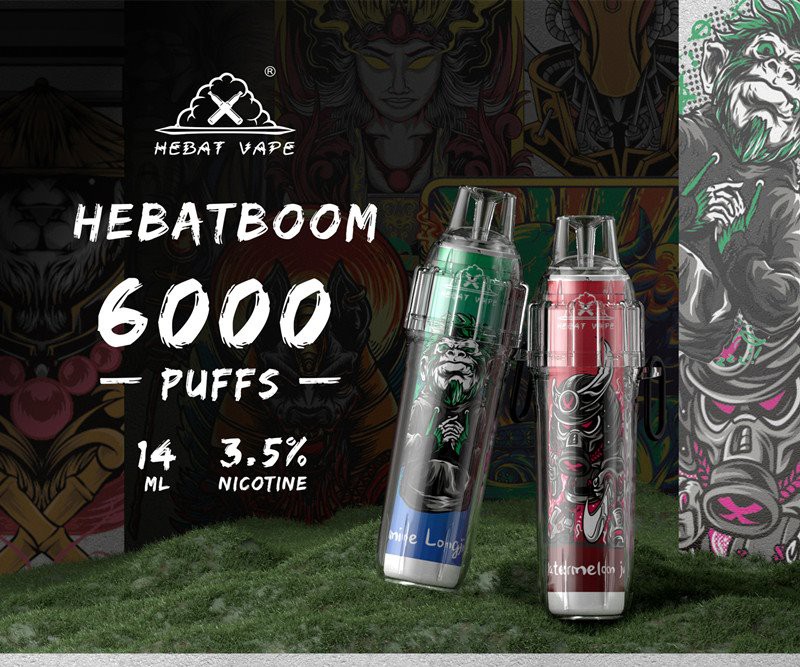 Hebat Boom 6000 su jednokratne i punjive elektroničke cigarete. Vrlo isplativ proizvod do 10 okusa: Tieguanyin, Iced cola, Grape ice, Lychee, Borovnica, Passion fruit, Mint, Strawberry, Lush ice, Energy drink.